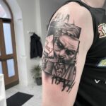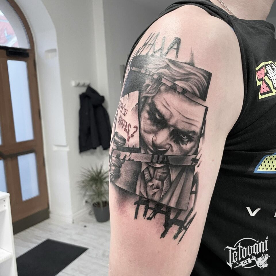 Tetování z filmů a pohádek Joker a nápisy na rameni