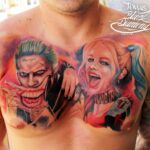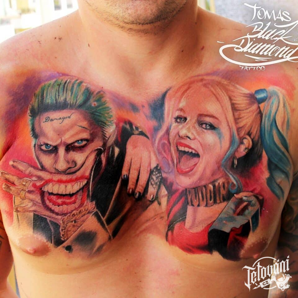Tetování z filmů a pohádek Joker, Harley Quinn portréty na hrudník