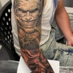 Tetování z filmů a pohádek, Joker, maska a kostky na rukávu