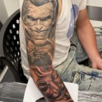Tetování z filmů a pohádek, Joker, maska, hrací kostky, rukáv