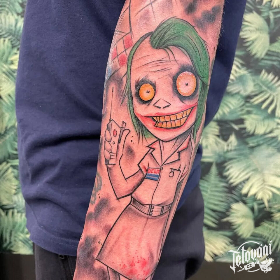 Tetování z filmů a pohádek Joker na předloktí