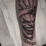 Tetování z filmů a pohádek Joker, nápisy na předloktí