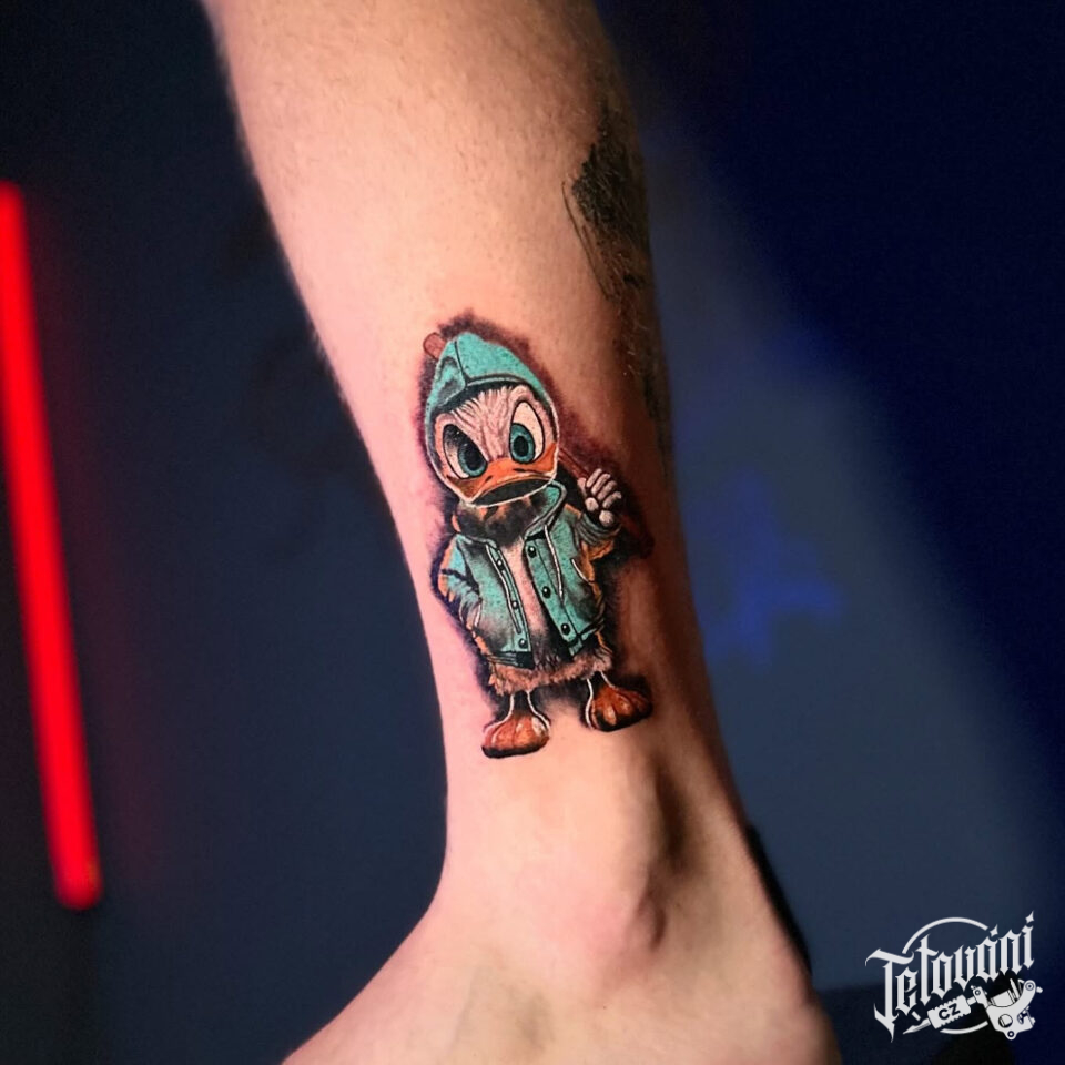 Tetování z filmů a pohádek Kačeři postavička na lýtko