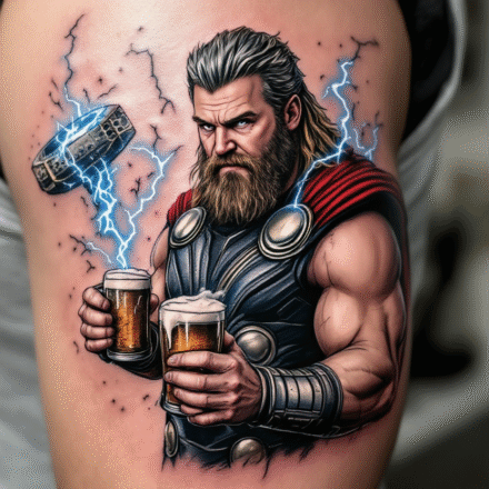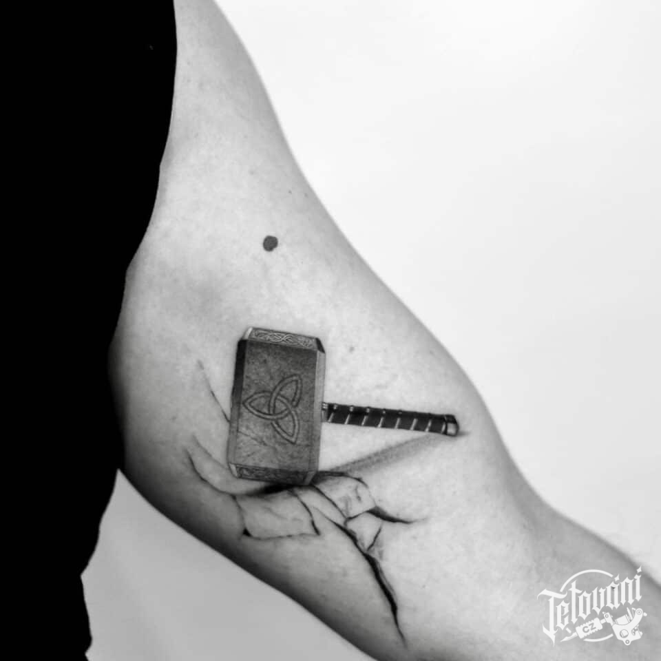 Tetování z filmů a pohádek, kladivo boha hromu Thora na paži