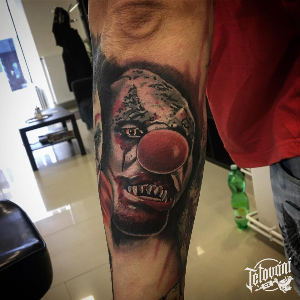 Tetování z filmů a pohádek klaun na předloktí