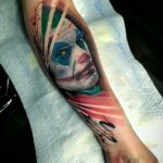Tetování z filmů a pohádek klaun, portrét na předloktí