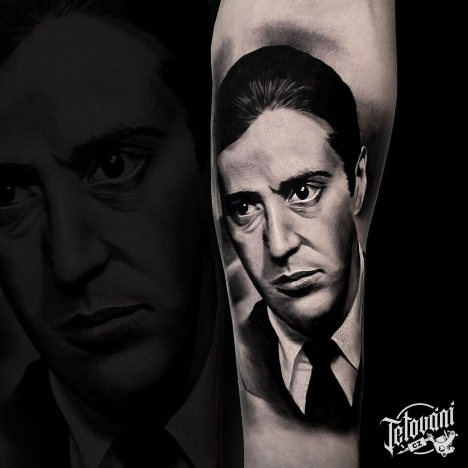 Tetování z filmů a pohádek, Kmotr, osobnosti, portrét Michael Corleone na předloktí