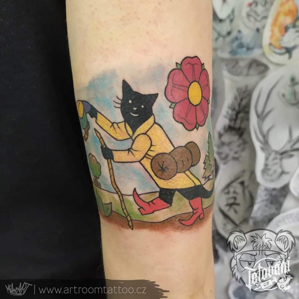 Tetování z filmů a pohádek, kocour Mikeš na paži
