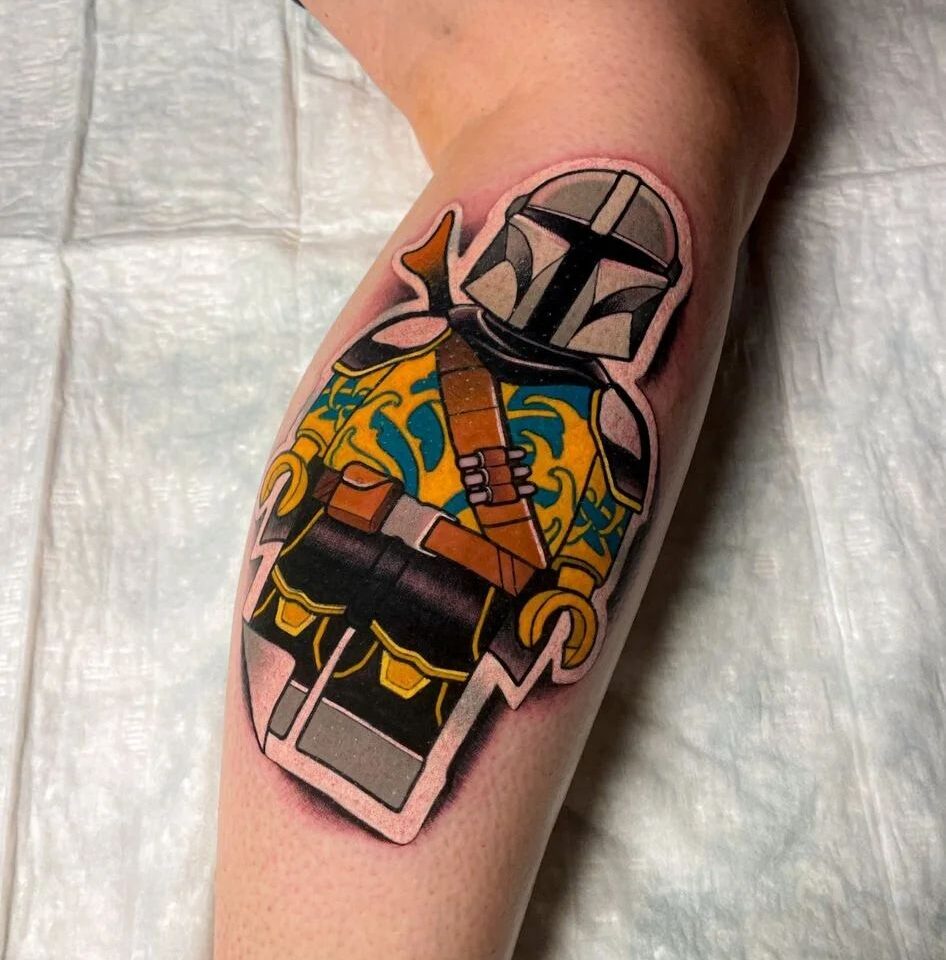 Tetování z filmů a pohádek lego bojovník na lýtko