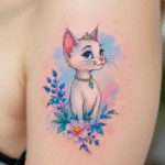 Tetování z filmů a pohádek Marie kočka a květiny na rameno