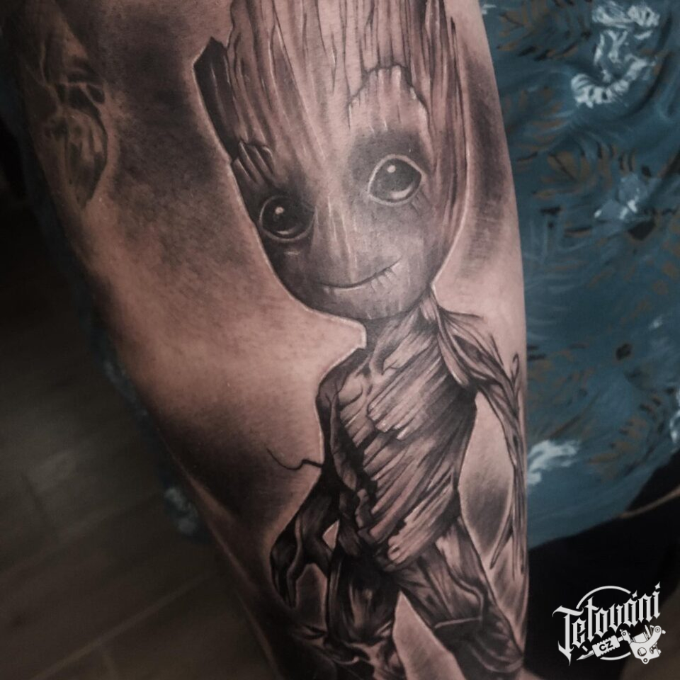 Tetování z filmů a pohádek Marvel a Avenger, Groot na stehno