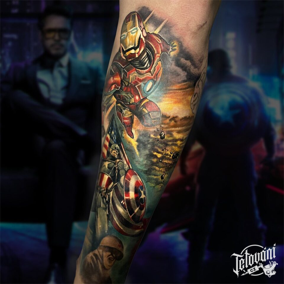 Tetování z filmů a pohádek, marvel a avengers na předloktí