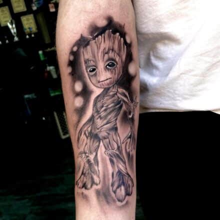 Tetování z filmů a pohádek Marvel, Avengers, Groot na lýtko