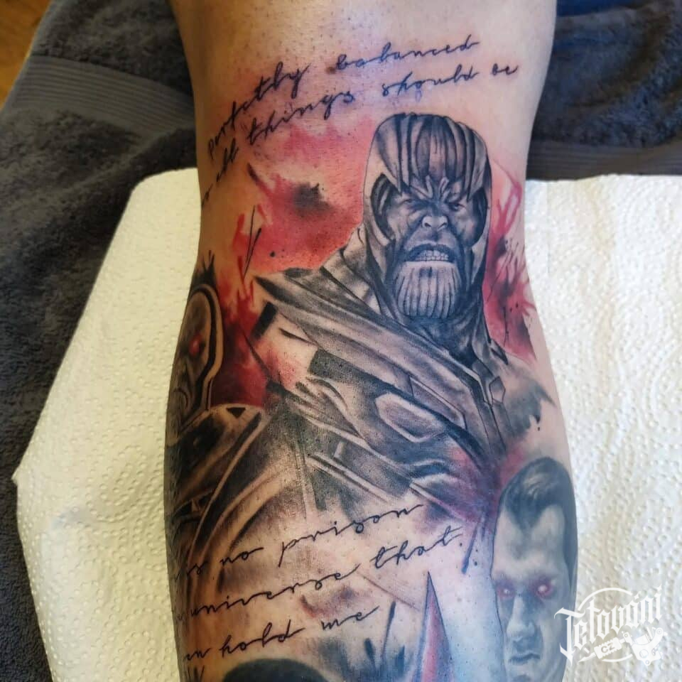 Tetování z filmů a pohádek Marvel, Avengers, Thanos na předloktí