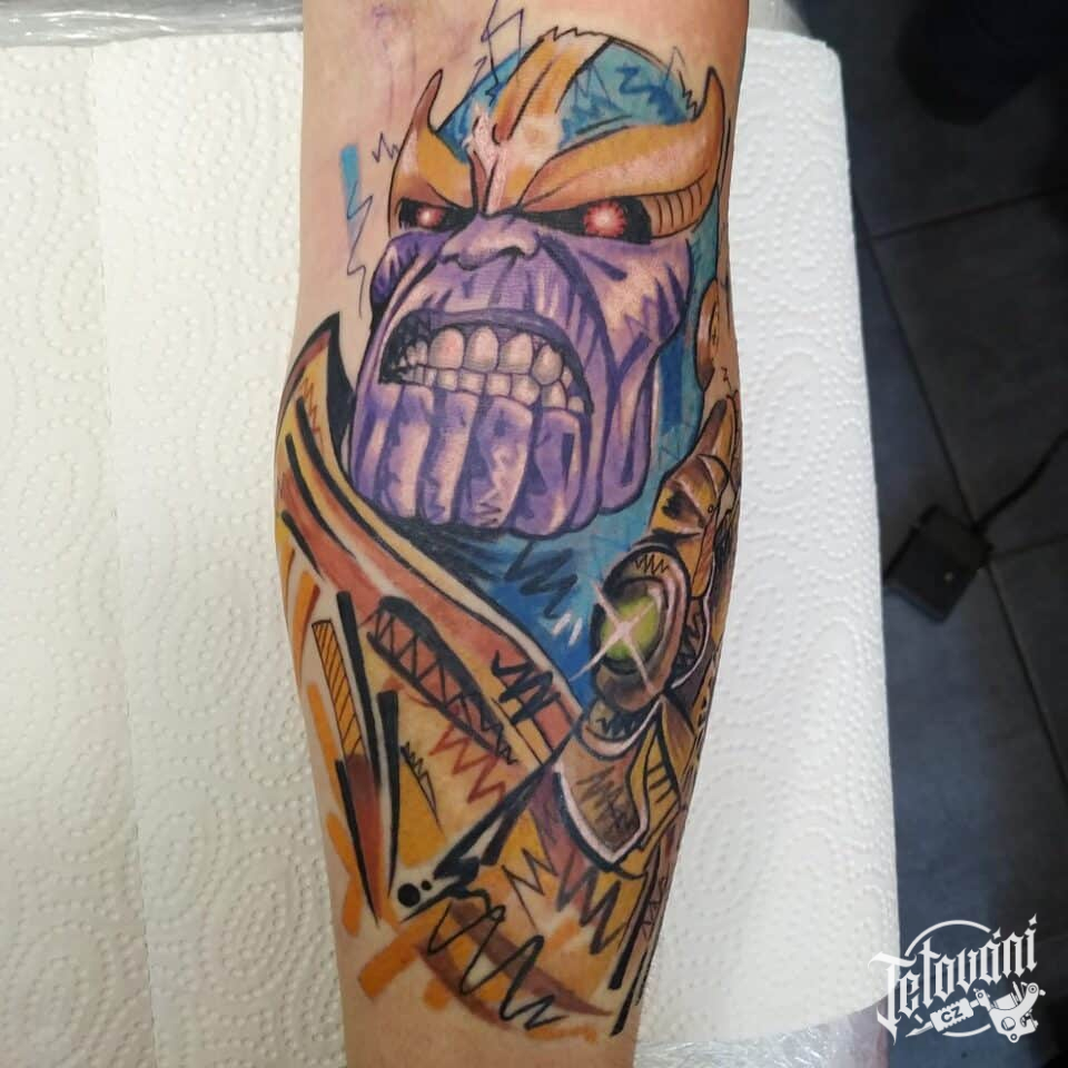 Tetování z filmů a pohádek Marvel, Avengers, Thanos na předloktí