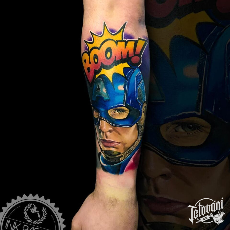 Tetování z filmů a pohádek, Marvel, Captain America na předloktí