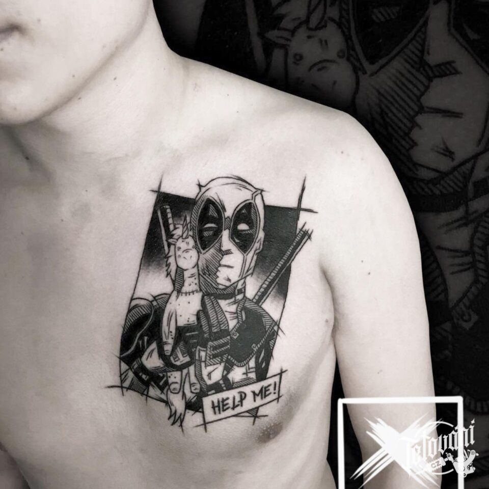 Tetování z filmů a pohádek, Marvel, Deadpool na hrudi