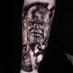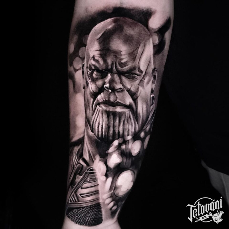 Tetování z filmů a pohádek, Marvel, portrét Thanose na předloktí