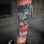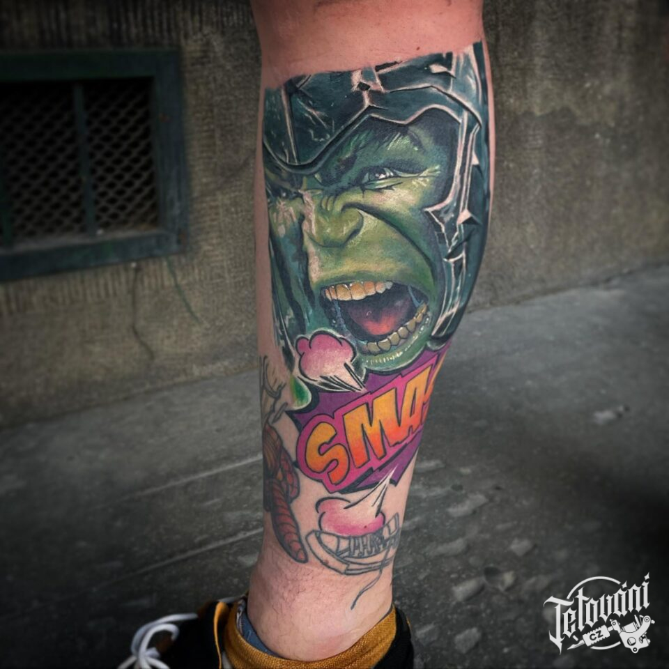 Tetování z filmů a pohádek Marvel, postavička Hulk na lýtko