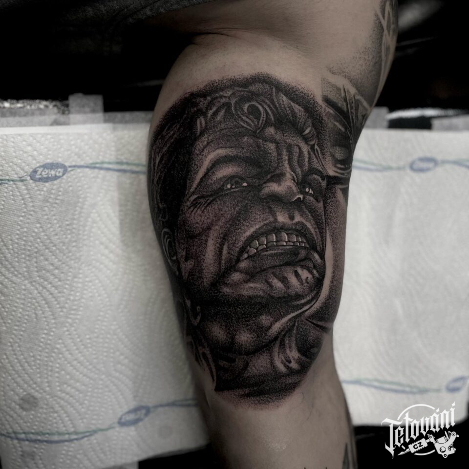Tetování z filmů a pohádek Marvel, postavička Hulk na paži