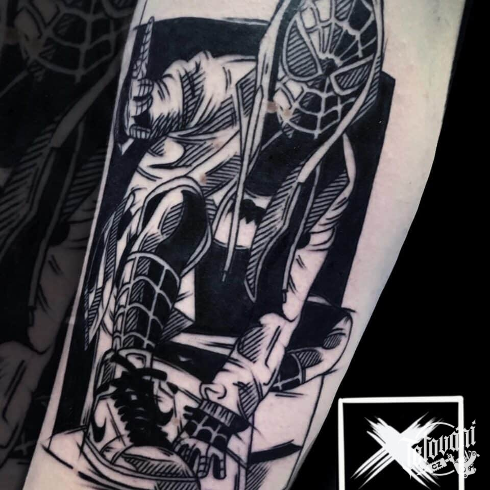 Tetování z filmů a pohádek, Marvel, Spiderman na lýtku
