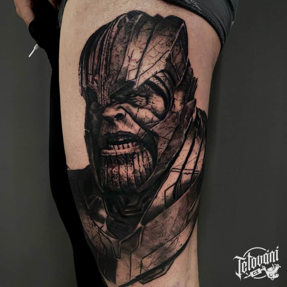 Tetování z filmů a pohádek, marvel, Thanos na stehně
