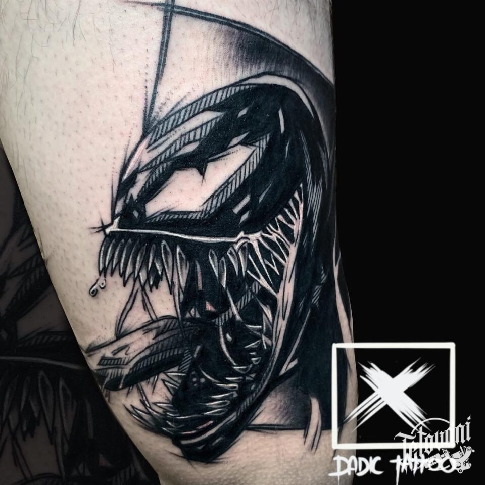 Tetování z filmů a pohádek, Marvel, Venom na stehně