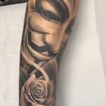 Tetování z filmů a pohádek, maska a růže na předloktí