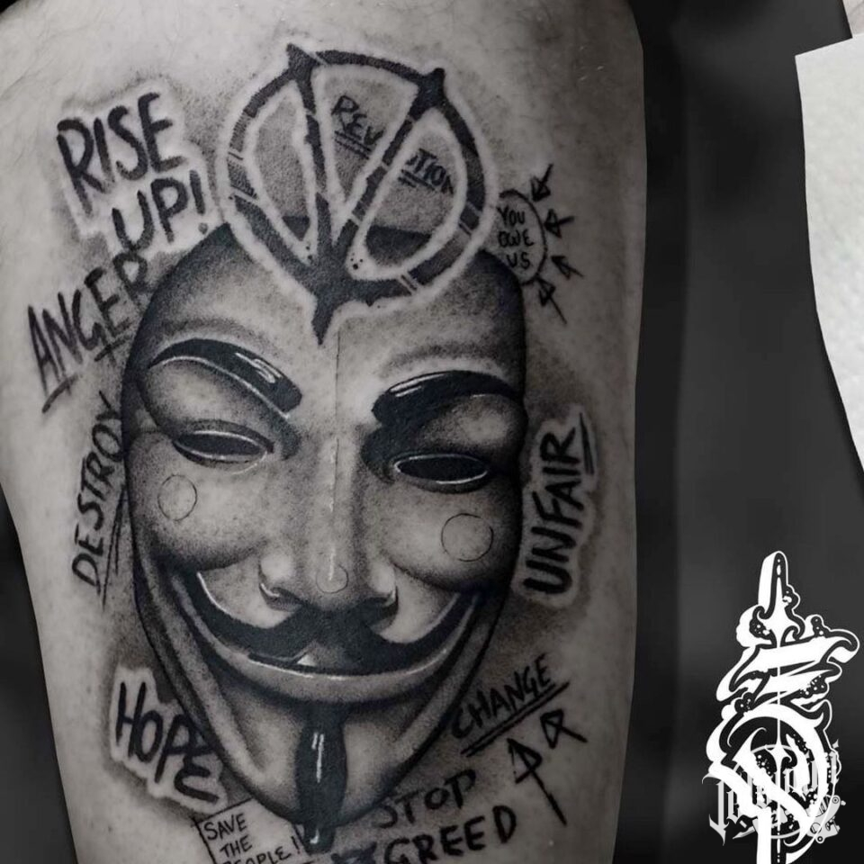 Tetování z filmů a pohádek, maska na stehně
