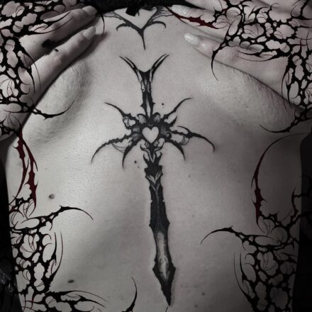 Tetování z filmů a pohádek, meč z Pána Prstenů na předloktí