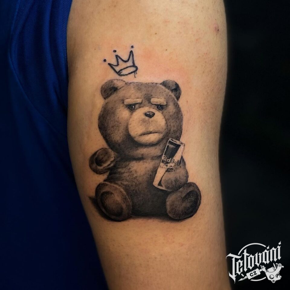 Tetování z filmů a pohádek medvěd Ted s korunou na paži
