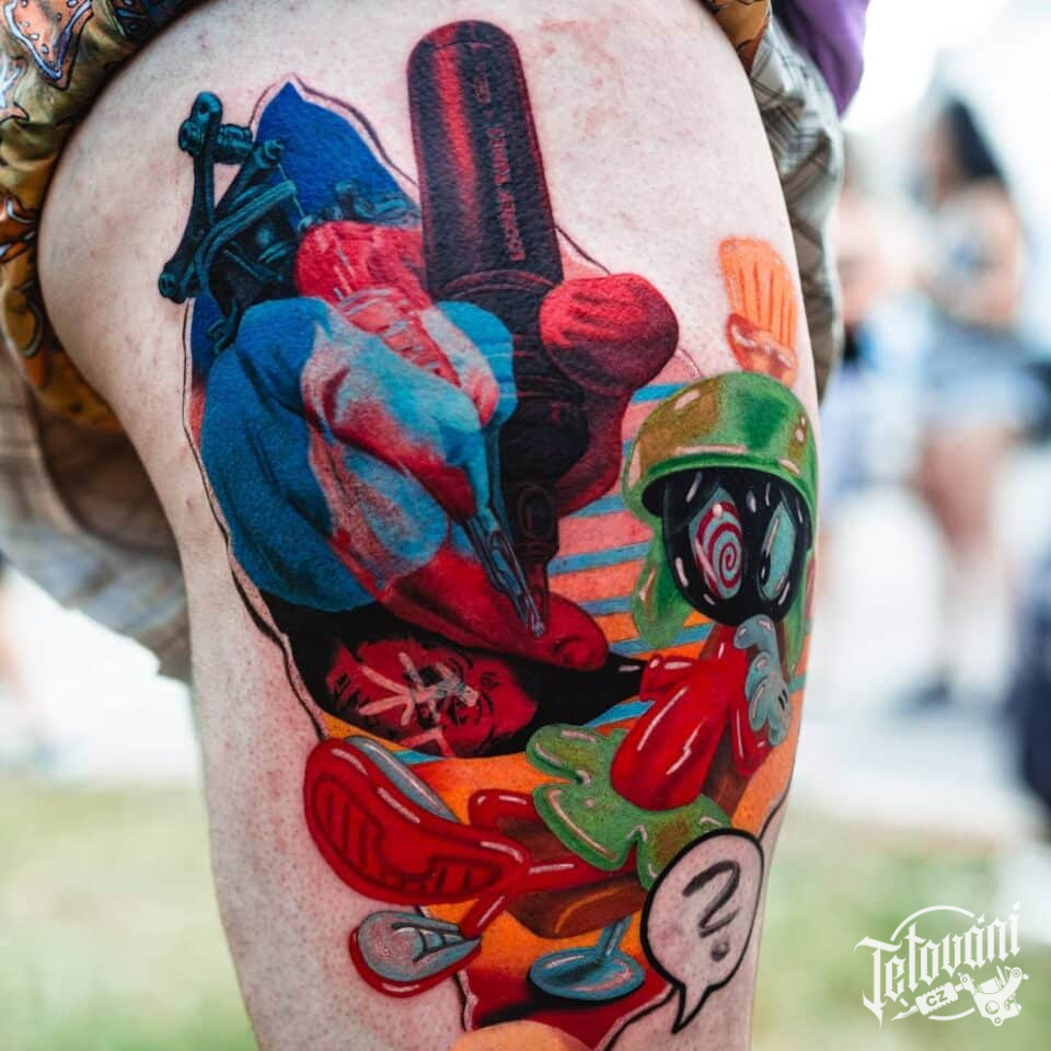 Tetování z filmů a pohádek Mimozemšťan Marwin na bok stehna