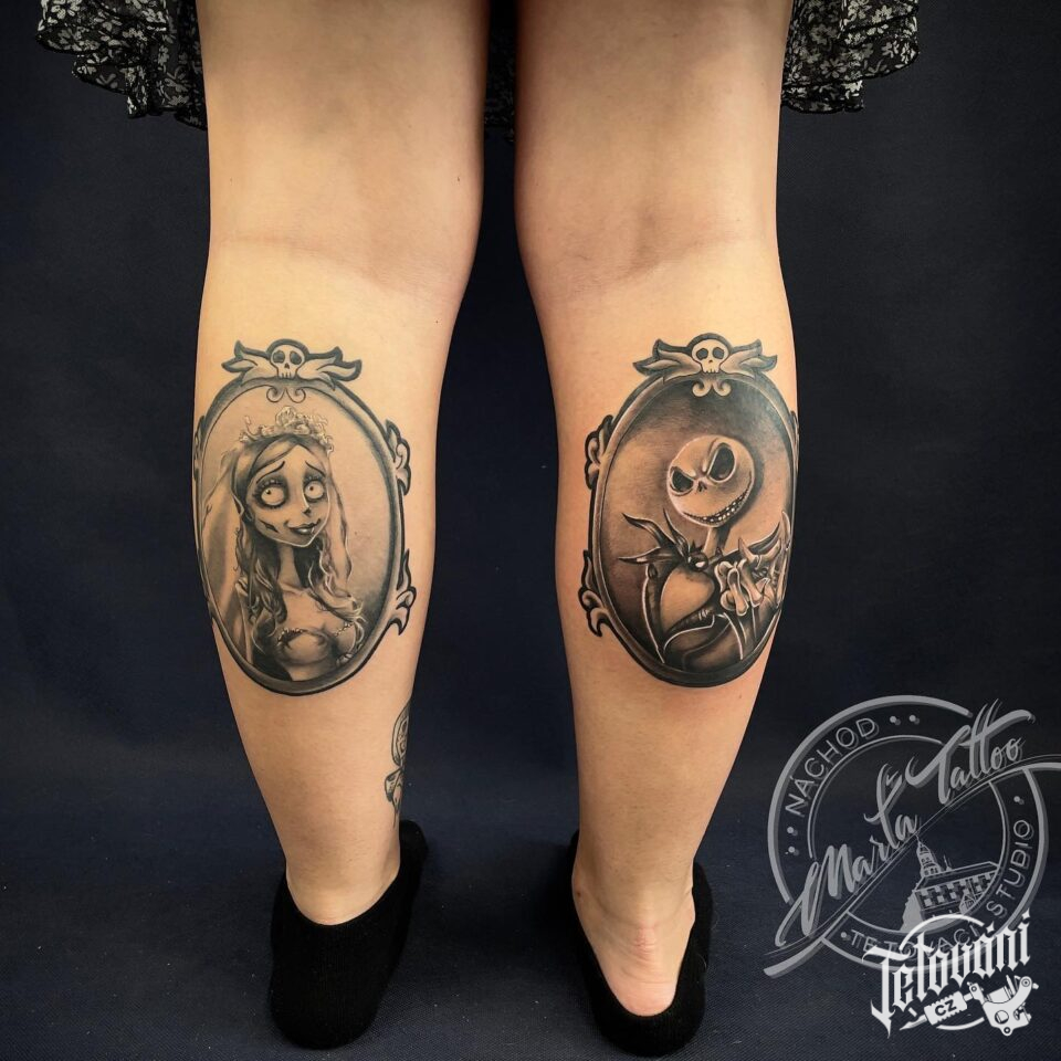 Tetování z filmů a pohádek Mrtvá nevěsta na lýtko