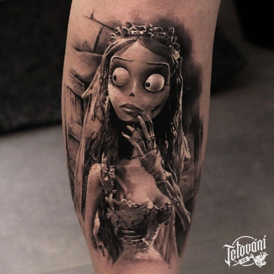Tetování z filmů a pohádek Mrtvá nevěsta, portrét na lýtko
