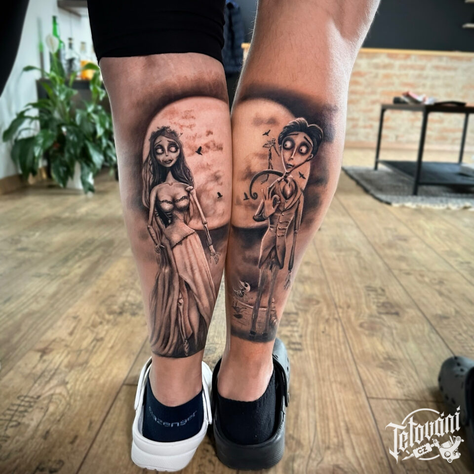 Tetování z filmů a pohádek Mrtvá nevěsta, postavičky na lýtka