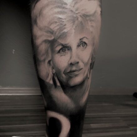Tetování osobnosti, portrét na bok stehna