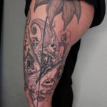 Tetování z filmů a pohádek na boku stehna