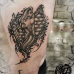 Tetování z filmů a pohádek na boku stehna