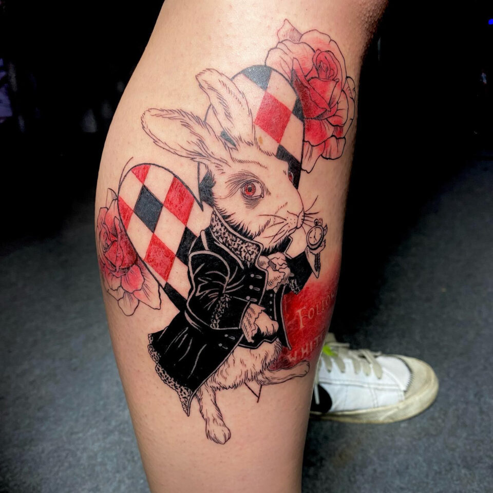 Tetování z filmů a pohádek na lýtku