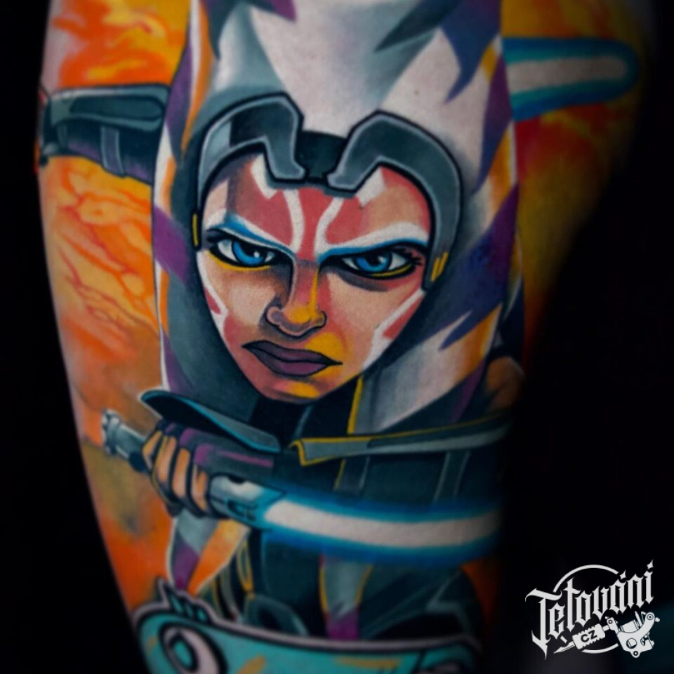 Tetování z filmů a pohádek na lýtku