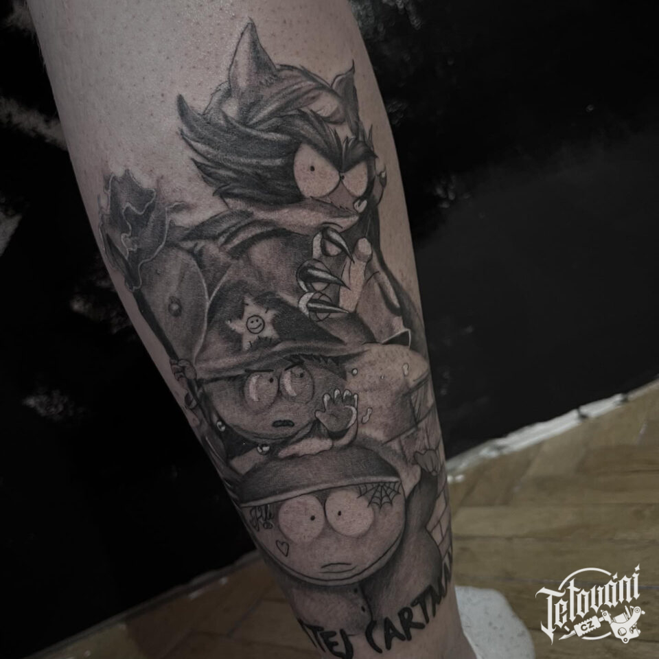 Tetování z filmů a pohádek na lýtku
