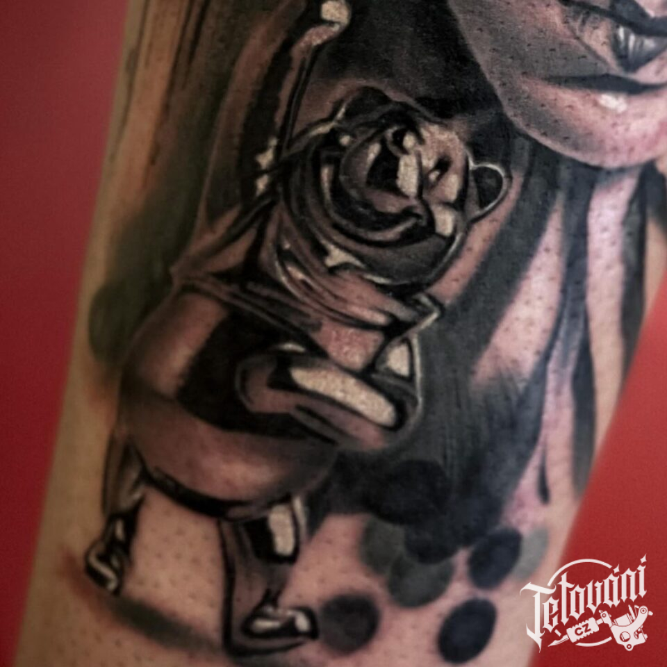 Tetování z filmů a pohádek na lýtku
