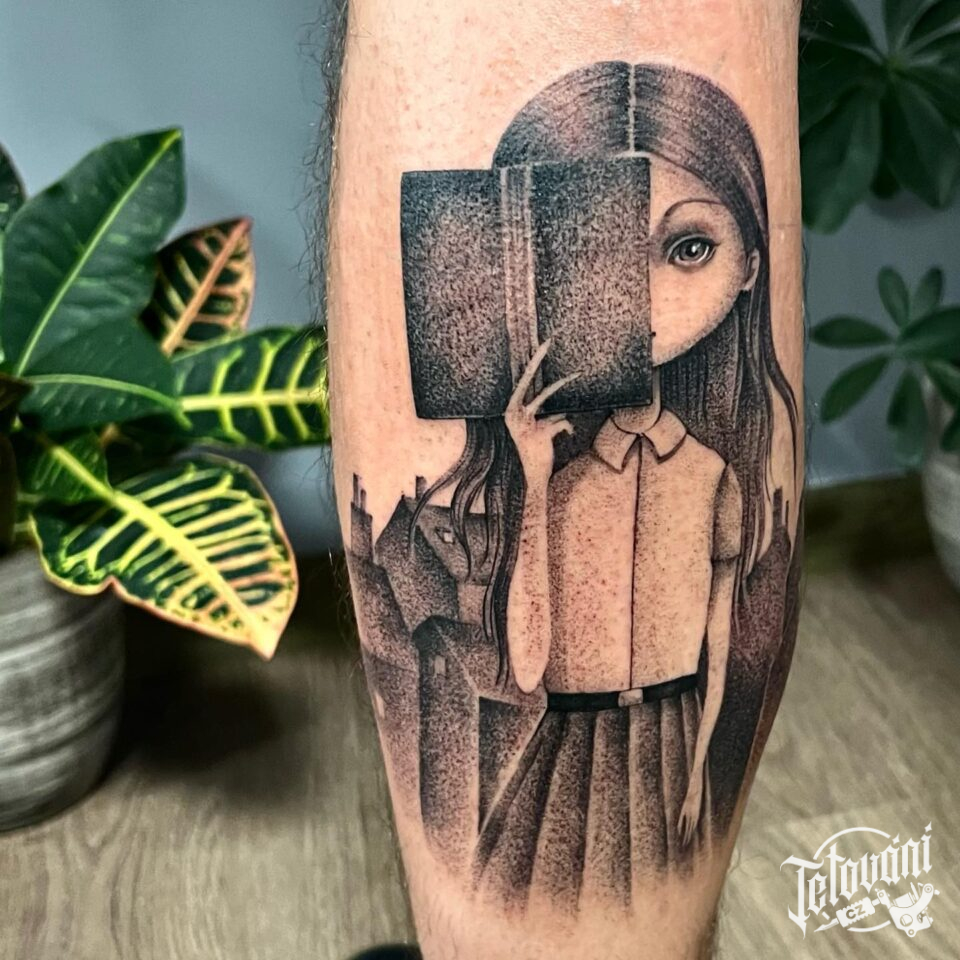 Tetování z filmů a pohádek na lýtku