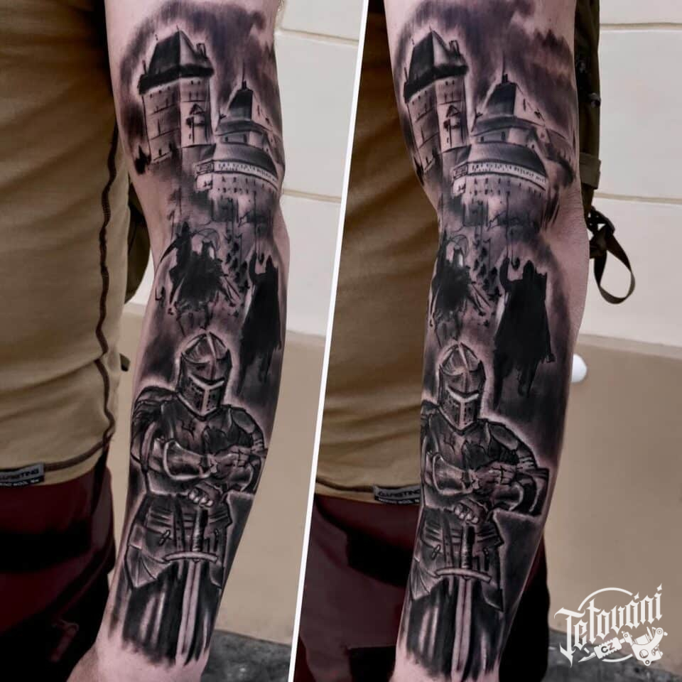 Tetování z filmů a pohádek na Noc na Karlštejně, rytíř na ruku