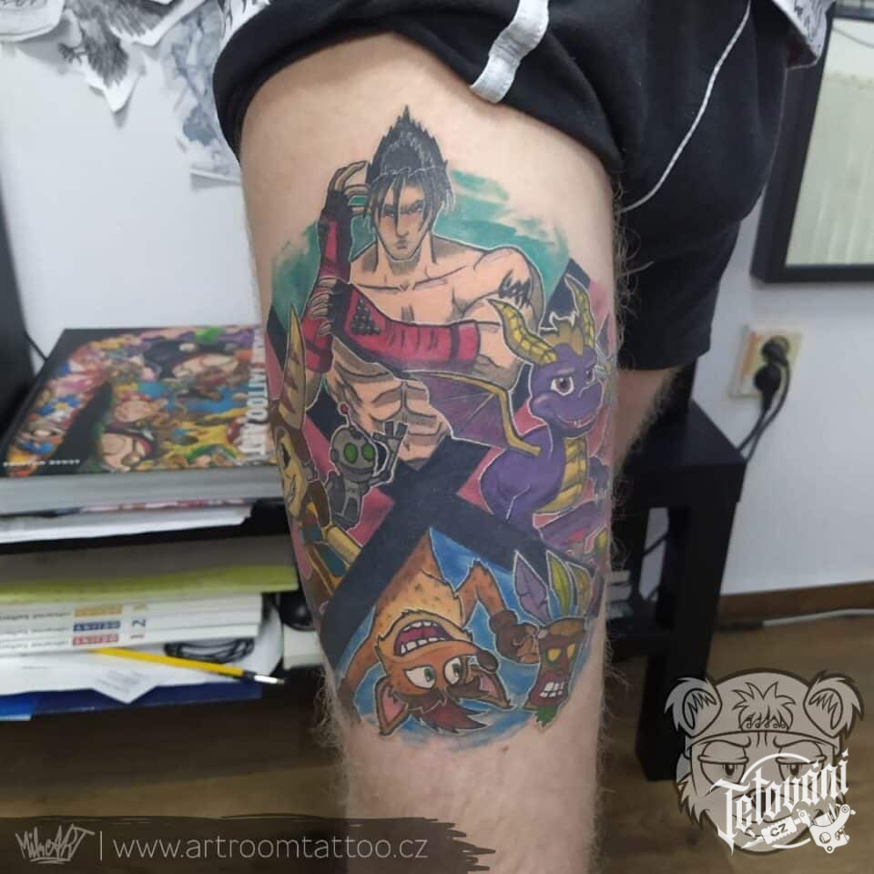 Tetování z filmů a pohádek na stehně