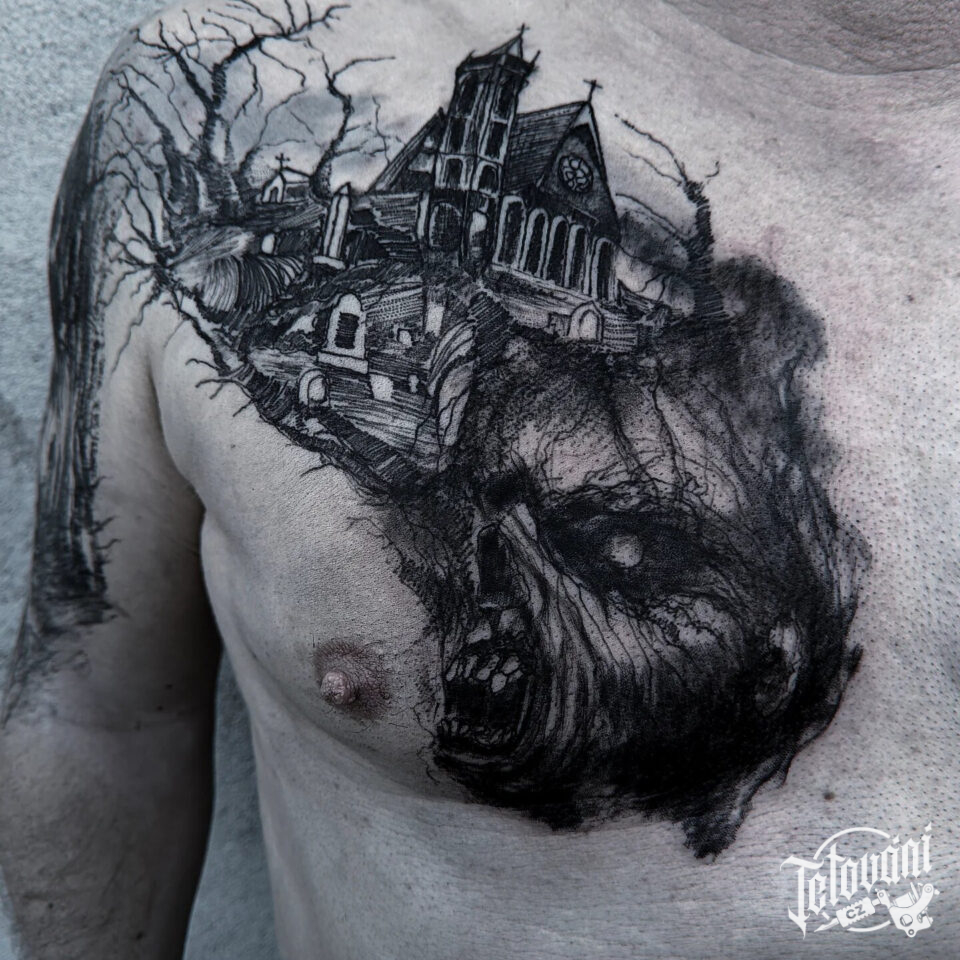 Tetování z filmů a pohádek, nadpřirozená bytost na hrudi