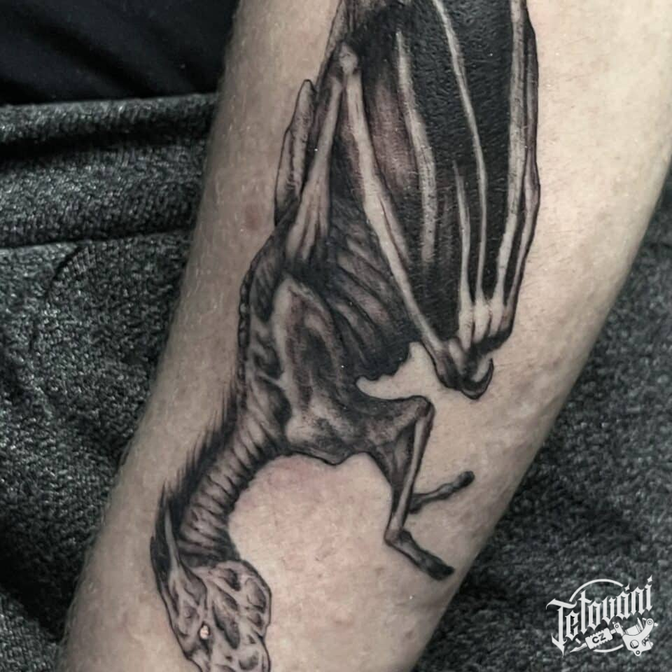 Tetování z filmů a pohádek, nadpřirozená bytost, Thestrál z Harryho Pottera na předloktí