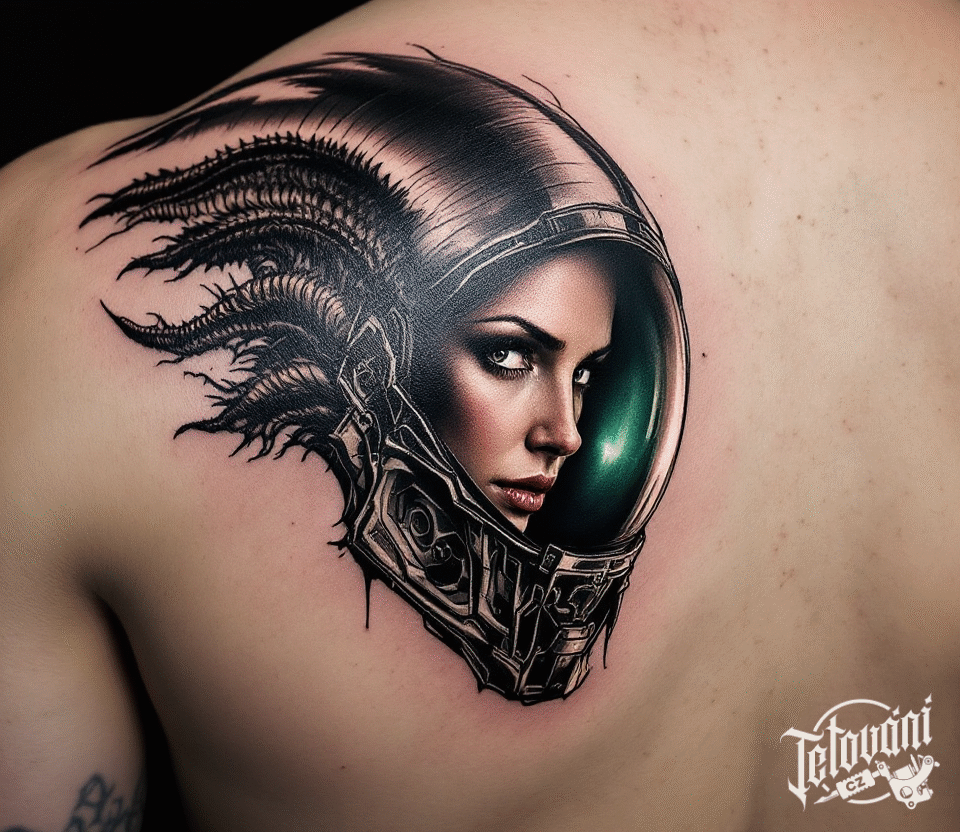 Tetování z filmů a pohádek, nadpřirozená bytost, vetřelec, žena na lopatku