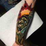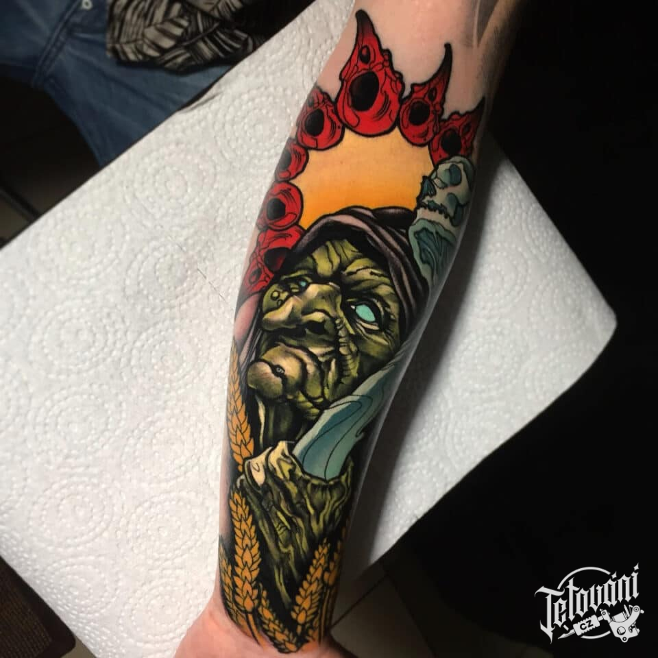 Tetování z filmů a pohádek, nadpřirozené bytosti, čarodějnice na předloktí