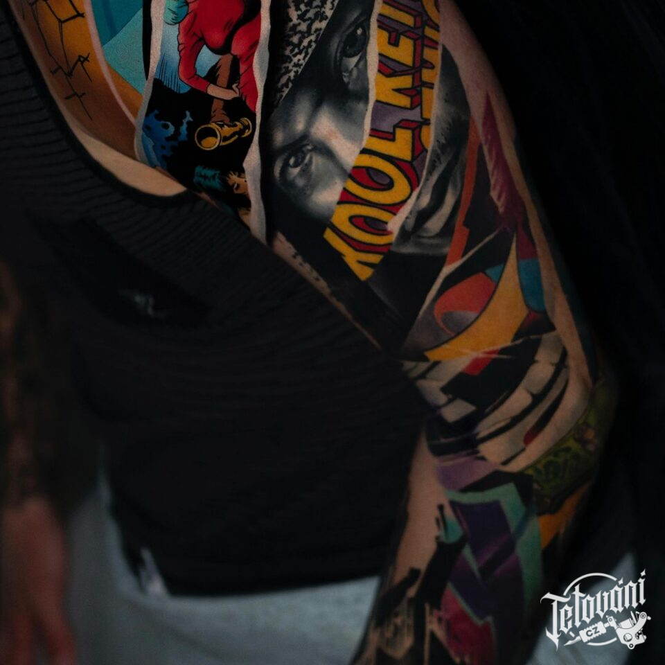 Tetování z filmů a pohádek, nápisy, portréty, rukáv